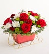 EXCLUSIVE Send holiday joy their way! Our dashing arrangement features classic Christmas-colored blooms and fragrant evergreens gathered in a vintage-style sleigh that will bring the festive spirit of the season into the home year after year. When it’s not filled with flowers, the sleigh is perfect as decor on its own or for holding wrapped treats.