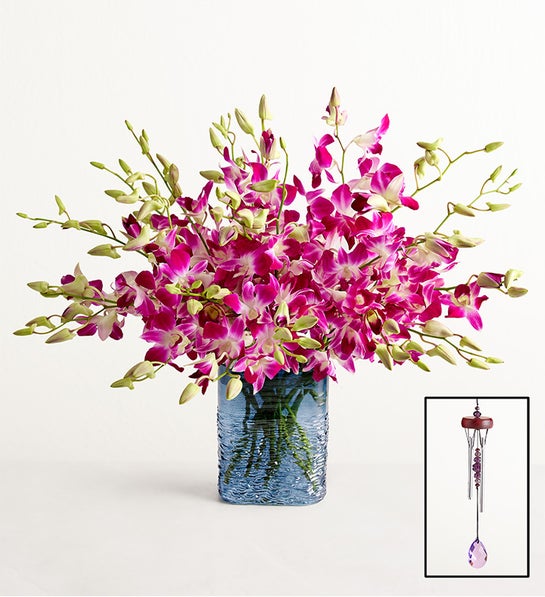 NEW Our rich purple orchids bring on the breezy beauty of a tropical day. Fresh and long-lasting, this eye-catching Dendrobium bouquet is a piece of paradise they’ll always remember. Send a bouquet of 10 or double the delight with 20 colorful blooms.